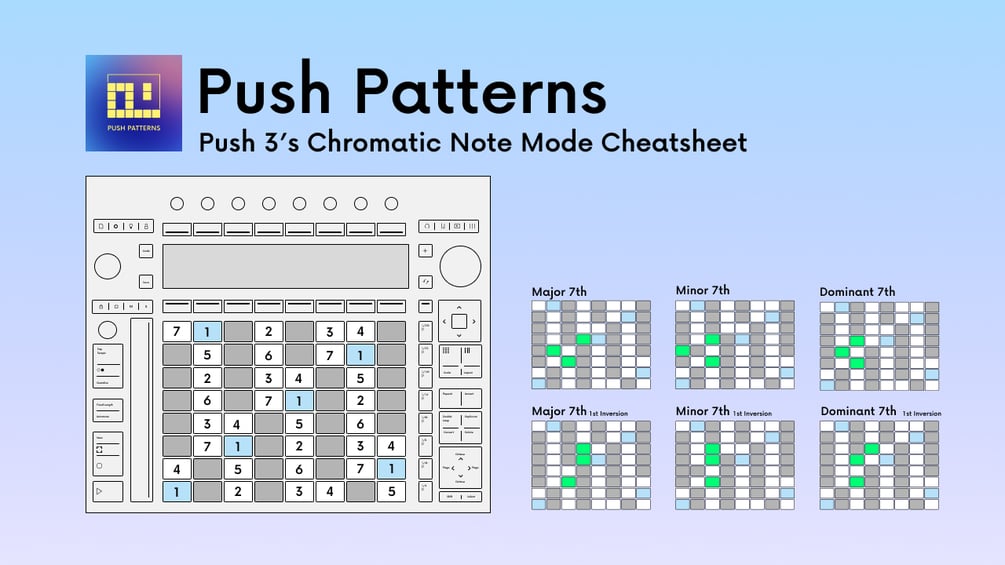 A free cheatsheet to help navigate some basic chord shapes on the Ableton Push 3 in chromatic mode.;